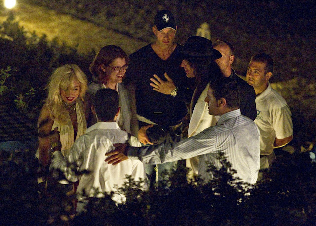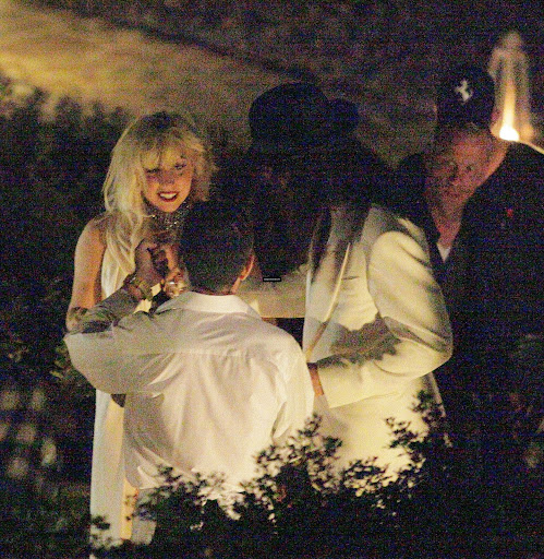 Lady Gaga e Luc Carl em um jantar na ilha de Creta, Grécia.
